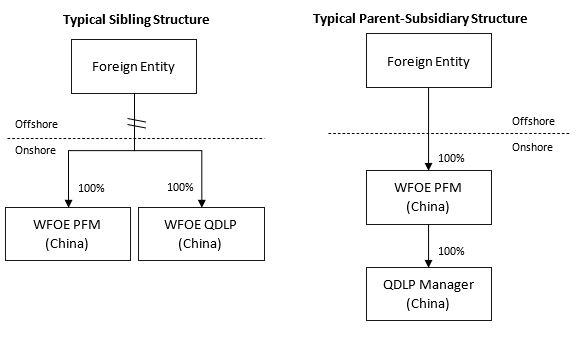 The incentives were proved to be effective, and it has led to a boost of new QDLP Managers being registered in 2018. Among foreign asset managers who have set up both a WFOE PFM entity and a QDLP entity, most of them have adopted the parent-subsidiary structure, while some adopt the sibling structure. One noticeable benefit of adopting the Parent-Subsidiary structure is that the capital contributed to the QDLP manager will be counted towards the capital requirements of the WFOE PFM manager, resulting in a more flexible capitalisation structure and allowing for 100% dual hatting between the employees of the two entities (which is not otherwise feasible under other structures).